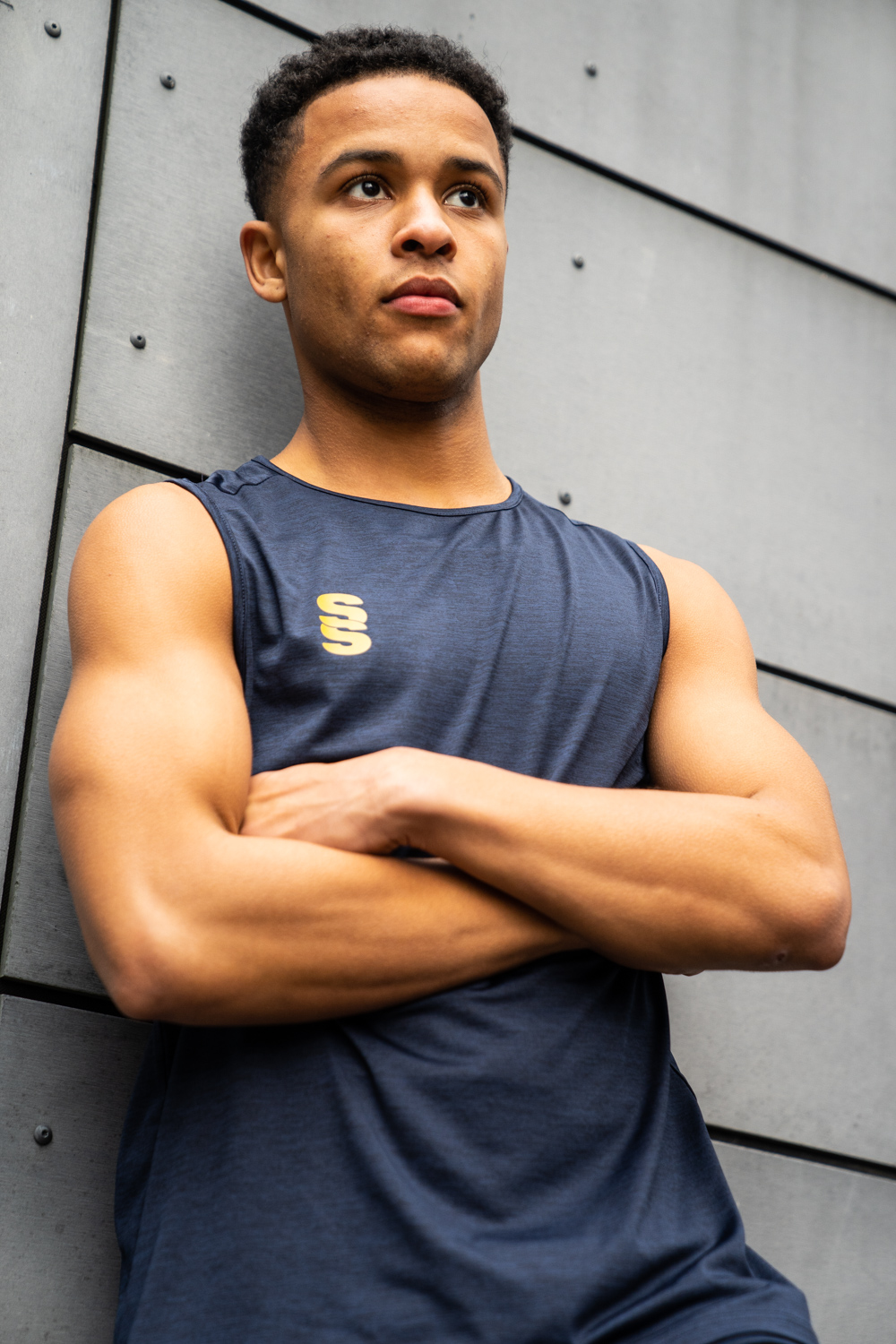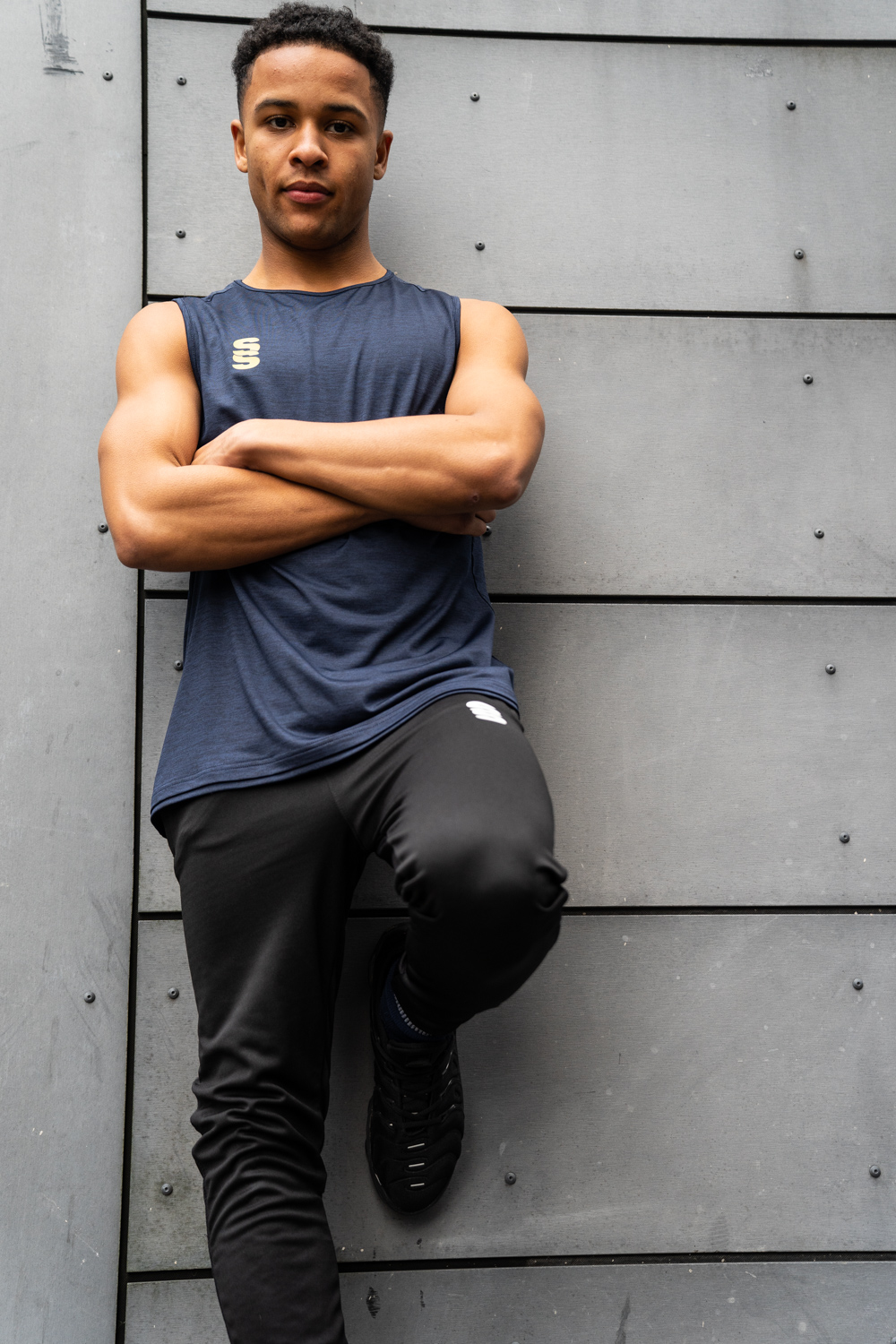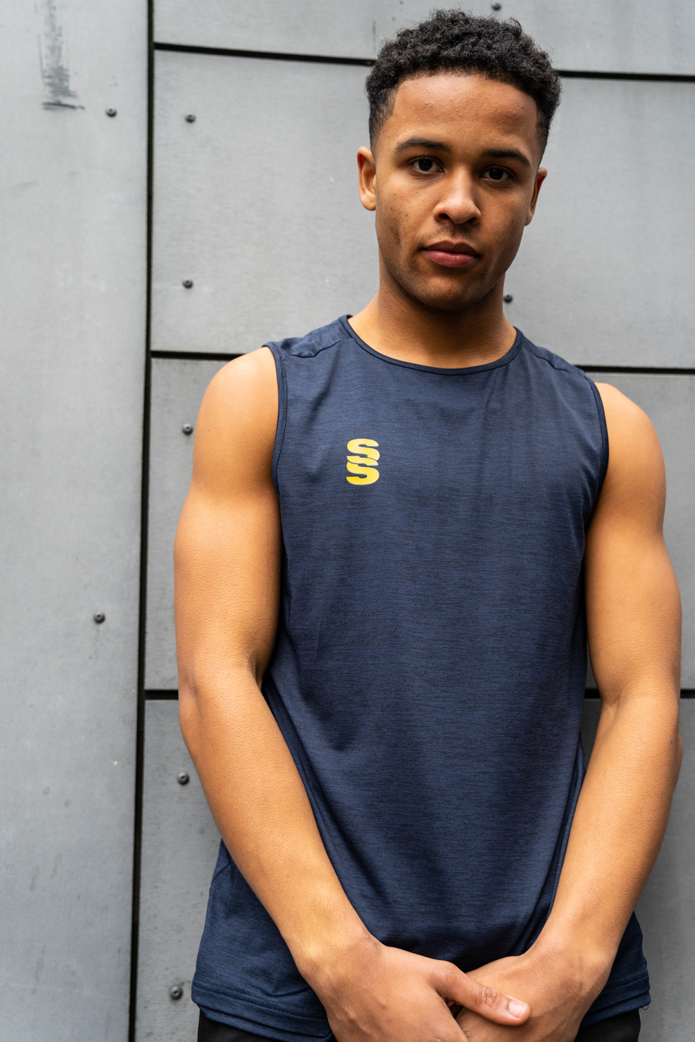 Melange polyester super stretchy material. Perfect for the gym - Great fit.